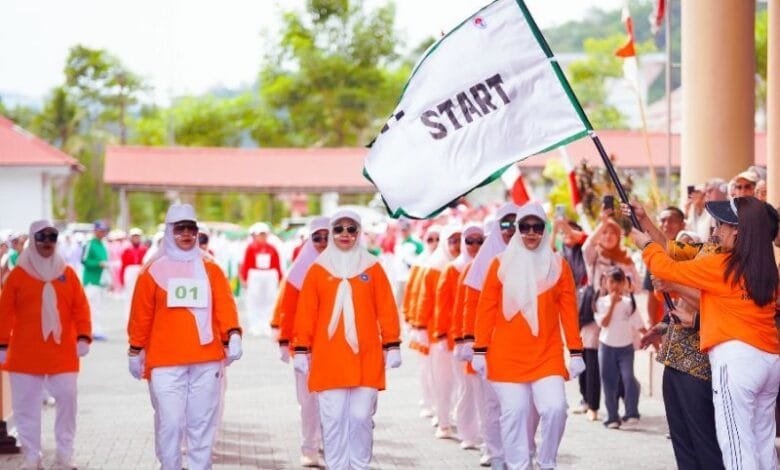 Wakil Bupati Bolmong Dony Lumenta bersama Ketua TP-PKK Kalsum Alhabsyi, Sekretaris TP-PKK Syliane Lumenta-Pangalila, para asisten, pimpinan OPD, dan ASN melepas peserta di garis start. Dalam sambutannya, Dony mengapresiasi ide dan partisipasi PKK: kontribusi ibu-ibu terbukti nyata, mendorong kemajuan daerah lewat kegiatan positif dan inklusif.